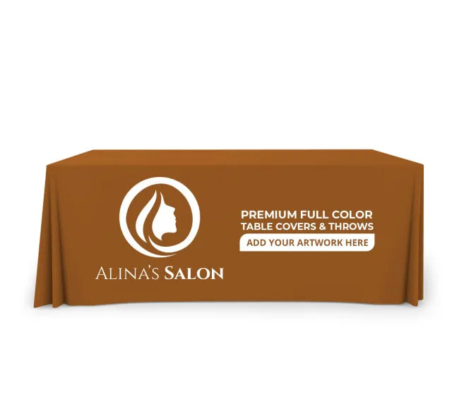Customize any design or Company logo of your choice on Table cloths. We carry 6ft, 8ft and 10ft. If you have special size we can create a special size table cloth with your design.